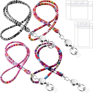 4 Stücke Ethnisches Lanyard Halskette Einziehbar Umhängeband Schlüssel Lanyards mit Vertikalen und Horizontalen Ausweishaltern für Frauen Designer ID Abzeichen Schlüssel Namensschild