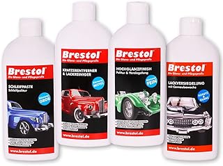 Brestol Autopolitur Set4 Polituren-Set - Schleifpaste + Kratzerentferner und Lackreiniger + Hochglanzfinish + Lackversiegelung zum Probieren und Kennenlernen Verschiedene feine grobe Körnung