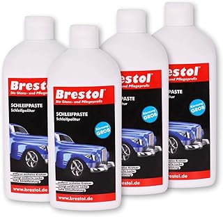 Brestol Schleifpaste 4X 500 ml - Schleifpolitur Autopolitur - entfernt Kratzer & Schrammen - Rostspuren Farbspuren Reibspuren - Lackreiniger Kratzerentferner