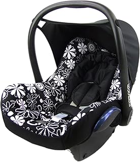 BAMBINIWELT Ersatzbezug für Maxi-Cosi Cabrio Fix 6-tlg, Bezug für Babyschale, Sommerbezug SCHWARZ + WEISSE BLUMEN