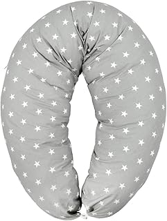 Stillkissenbezug für Stillkissen 190cm in verschiedenen Farben und Designs von HOBEA-Germany, Modell:grau mit weißen Sternen