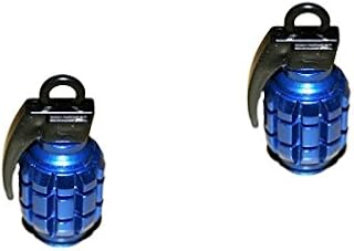 2er Set Ventilkappen - Handgranate - in blau für Motorrad