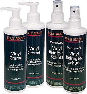 2 x Blue Magic Vinylreiniger mit Zersteuber,2 x Blue Magic Vinylcreme mit Dosierspender