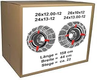 26x12.00-12 Schneeketten + Spanner für Rasentraktor Aufsitzmäher 26x10x12 / 24x13-12 24x13.00-12
