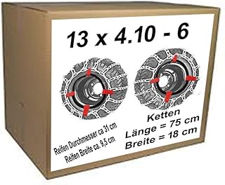 13x4.10-6 Schneeketten + Spanner für Rasentraktor Aufsitzmäher Reifen Durchmesser ca.31 cm Reifen Breite ca 9,5 cm
