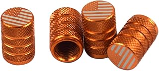 Shiwaki 4 x Premium Ventilkappen für Auto, Motorrad und Fahrrad Ventildeckel Auto Staubschutz Ventilkappe, USA Flagge - Orange