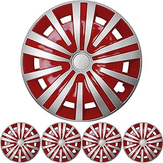 4X Premium Design Radkappen Radzierblenden Set 'Spinel' 15 Zoll in Rot/Schwarz