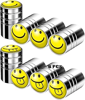 Auto Ventilkappen Abdeckung 8 Pcs Reifenventil Staubkappen Set Metall Autoventil Schraderventil Metall Ventilkappen Smiley Yellow Für Verhindern Sie DASS Autoreifen Luft Und Staub Austreten Lassen